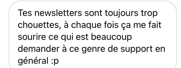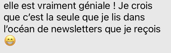 J’ai commencé à recevoir des réponses, directement dans ma boîte mail, de personnes qui me suivaient sans ouvrir mes newsletters, mais qui se mettaient enfin à les lire !
